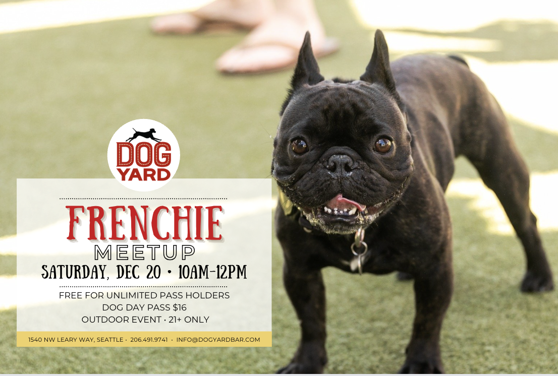 On Saturday, December 20th, we're hosting a meetup for French Bulldogs. Mixes welcome!