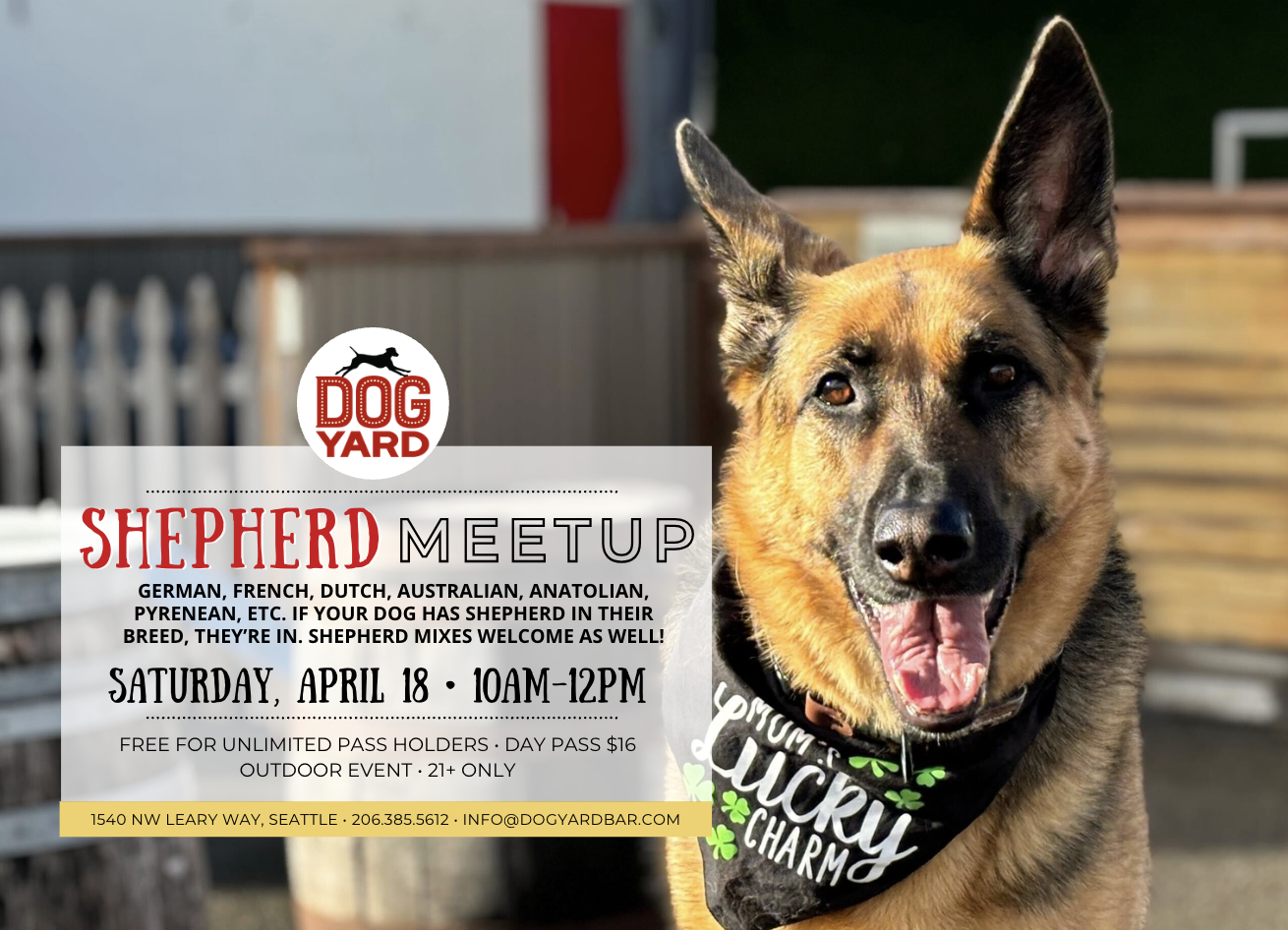On Saturday, April 18th, we're hosting a meetup for Shepherds: German, French, Dutch, Australian, Anatolian, Pyrenean, and more. If your dog has shepherd in their breed, they’re in. Mixes welcome!